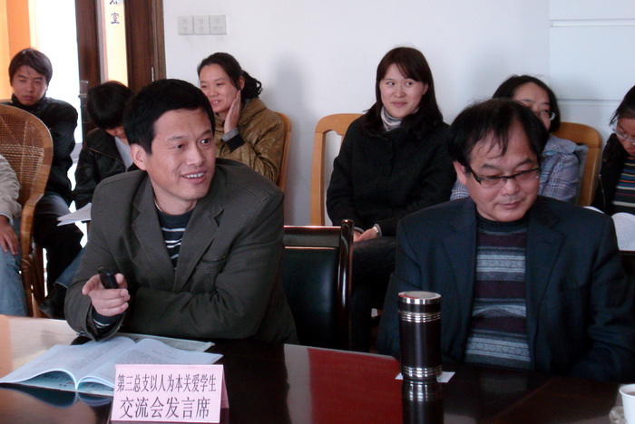 第三總支包括基礎(chǔ)部、體育部?jī)蓚€(gè)部門(mén)共七十多位教職工,為使盡可能多的教職工參加交流會(huì),特地分部門(mén)安排兩個(gè)時(shí)段進(jìn)行交流。交流會(huì)上,蔣志強(qiáng)、錢(qián)北軍、巢桂芳、李立新、潘麗娜等13位老師作了交流發(fā)言。發(fā)言的老師不僅交流了自己在多年的教育教學(xué)過(guò)程中的成功案例,也對(duì)照以人為本內(nèi)涵要求反思了自己工作中的失誤和補(bǔ)救過(guò)程。交流會(huì)加深了大家對(duì)以人為本理論的理解,提升了大家愛(ài)崗、愛(ài)生的情感。