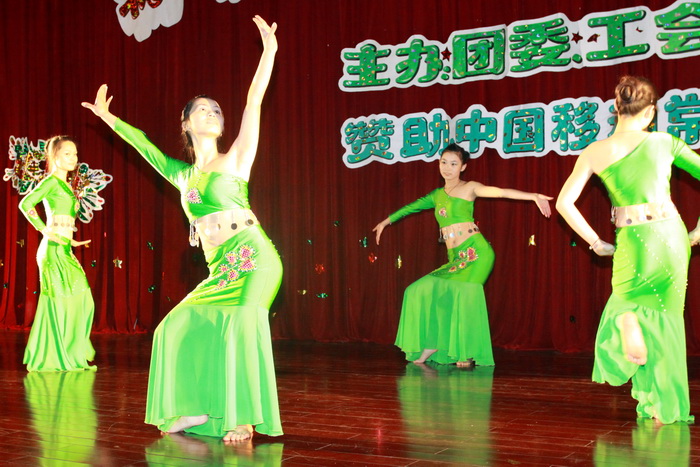 隨后,精彩的節目帶著新年的第一聲祝福為大家送去了一個又一個驚喜。信息系選送的舞蹈《歌舞青春》改編自百老匯經典歌舞劇,完美展現了當代大學生的青春風采與無限活力;電子系韓楊老師與院十佳歌手徐紹燕同學帶來的歌曲《祈禱》溫馨浪漫,娓娓動聽;大學生藝術團表演的《土家風情》、院工會帶來的苗族舞《擺啊擺》和機械系選送的蒙古族舞《草原騎兵》整合成了一出民族舞大聯歡,曼妙的舞步,輕盈的身姿,淋漓精致地展現出了少數民族的文化特色,為全場觀眾帶來了一場豐富的視覺盛宴;由藝術系周益老師指導的onlydance社團選送的爵士舞再一次引爆了全場,尖叫聲、喝彩聲連連;基礎部李立新老師表演的詩朗誦《相信未來》則強有力地表達出了每一位輕院人踐行“建軍精神”的豪情壯志,幾度被全場師生熱烈的掌聲所打斷,也將這次盛會推向了高潮;由輕化系李劉麗老師和信息系柏鐵山老師分別領銜的歌伴舞《青花瓷》和《童年》引燃了觀眾們的激情;大學生藝術團選送的笛子伴舞《神話》,電子系選送的歌曲《最炫民族風》和舞蹈《茉莉幽香》,旅游系選送的《美麗的地方》也贏得了全場師生的一致好評。