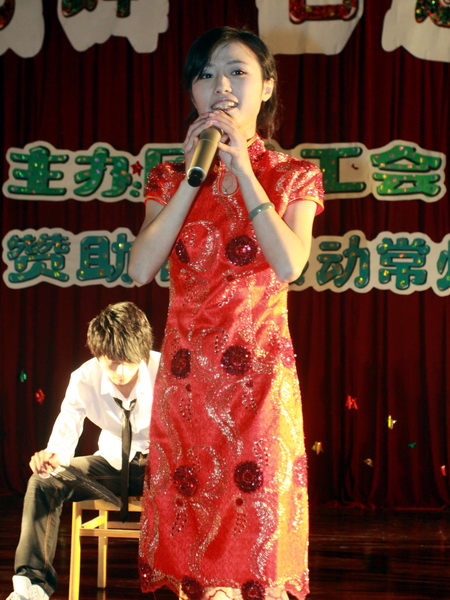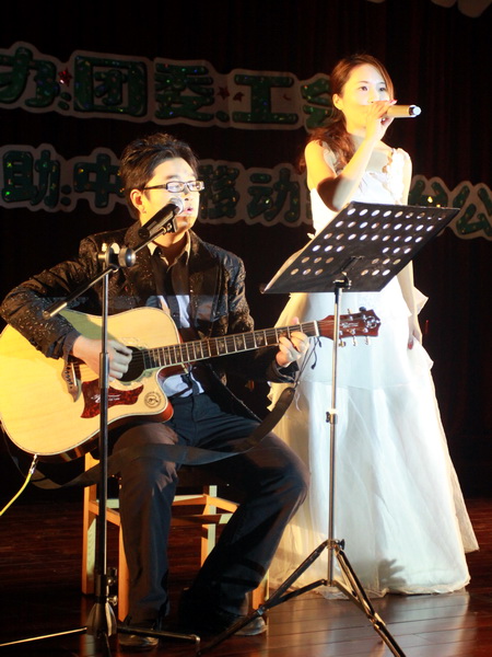 電子系韓楊老師和院十佳歌手徐紹燕同學演唱歌曲《祈禱》