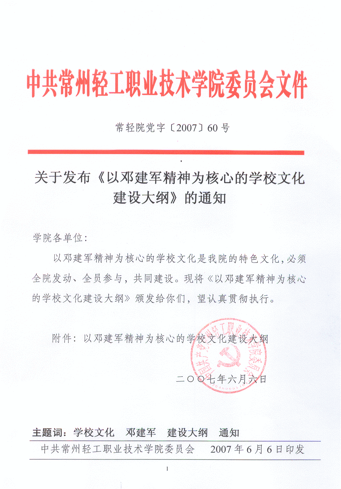 第二條 以鄧建軍精神為核心的學(xué)校文化是我院的特色文化。鄧建軍精神內(nèi)容是:愛崗敬業(yè),自強不息。