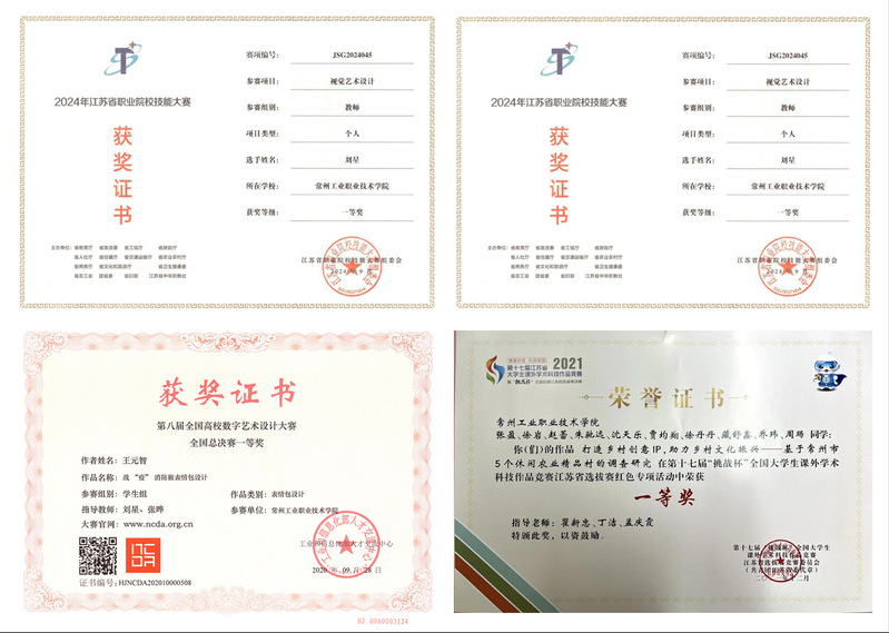 劉星:副教授,數字媒體藝術設計專業帶頭人,江蘇省美術家協會會員,ICAD國際商業美術設計師,騰訊云1+X界面設計職業技能培訓認證講師,本科畢業于南京藝術學院,碩士畢業于蘇州大學,在加拿大百年理工學院進修學習,具備較強的設計實踐經驗,設計作品多次在專業展覽中獲獎,曾獲江蘇省職業院校技能大賽視覺藝術賽項教師組一等獎,發表論文十余篇,多次主持參與企事業單位的設計項目,獲一致好評。指導學生多次在省職業院校技能大賽、省優秀畢業設計、大學生藝術展演、全國高校數字藝術大賽等專業賽項中獲一、二、三等獎。