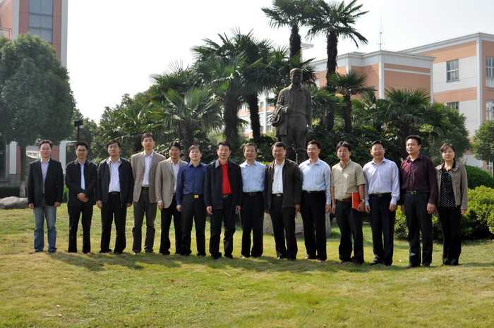 鄧建軍銅像前合影