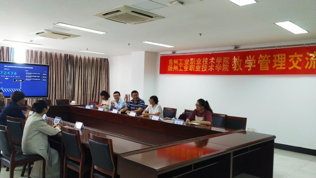 9月20日,我院教務處處長潘安霞,副處長沈治帶領教務處四個科室科長一行六人,前往揚州工業職業技術學院學習交流。受到了揚州工業職業技術學院教務處處長張宏彬、副處長劉曉鳳的熱情接待。