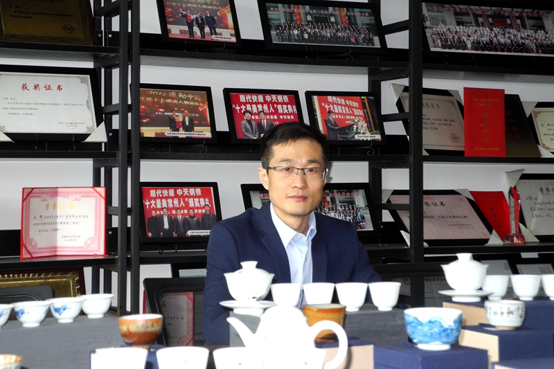 位于鐘樓區的常州科技街占地3.7平方公里,王輝的江蘇感動未來文化科技有限公司是該區域最大的廣告文創公司了。公司租用了1000多平米的辦公用房,王輝帶我走進他的406室展示廳。展示廳內滿桌擺放的都是公司為客戶設計制作的陶瓷禮品,此外最霸占眼球的,就是展架上那上百幀照片和證書:中國展覽工程企業一級資質、中國廣告企業一級資質、中國展覽館展陳工程設計施工一體化一級資質、建筑裝修裝飾工程專業承包二級資質、建筑幕墻工程專業承包二級資質,江蘇省創業典型、江蘇省廣告協會理事單位、江蘇省優秀誠信服務企業、常州市守合同重信用企業、常州市民營科技企業、常州市廣告商會副會長單位,常州市廣告商會秘書長……讓我意外的是:展架的中央竟然出現了“中國好人”銅牌!
