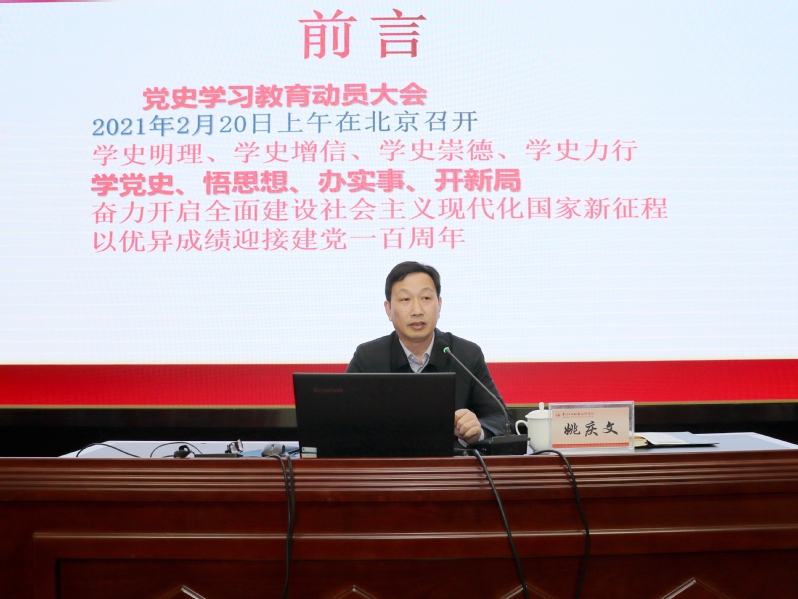 姚慶文從中國共產(chǎn)黨的建立過程、中國共產(chǎn)黨的名稱由來、中國共產(chǎn)黨人的初心和使命三個(gè)方面展開,既有歷史史實(shí),又有現(xiàn)實(shí)思考。姚慶文強(qiáng)調(diào),要把學(xué)習(xí)領(lǐng)悟黨史、新中國史作為黨史學(xué)習(xí)教育的重要途徑,在深入學(xué)習(xí)和不斷領(lǐng)悟中,了解黨史、新中國史的重大事件、重要會(huì)議、重要文件、重要人物,了解我們黨領(lǐng)導(dǎo)人民進(jìn)行艱苦卓絕的斗爭歷程,了解中國近代以來170多年的斗爭史、我們黨100年的奮斗史、新中國70多年的發(fā)展史,了解我們黨的光榮傳統(tǒng)、寶貴經(jīng)驗(yàn)和偉大成就,弄清楚我們從哪里來、往哪里去,弄清楚艱苦卓絕是什么、是怎么來的,弄清楚中國共產(chǎn)黨為什么能,馬克思主義為什么行,社會(huì)主義為什么好;做到知史愛黨、知史愛國,做到常懷憂黨之心、為黨之責(zé)、強(qiáng)黨之志。