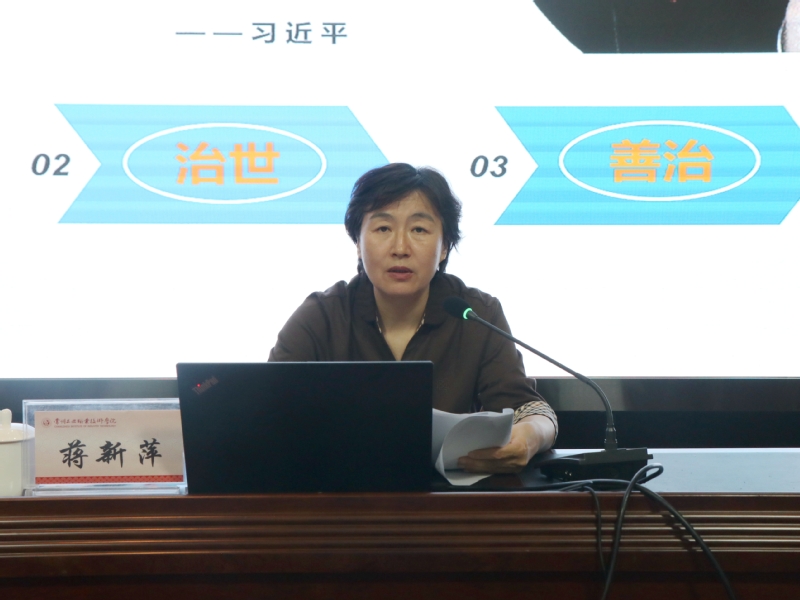 蔣新萍希望大家通過深入學習黨史,感悟馬克思主義科學理論的真理力量,汲取中國共產(chǎn)黨百年奮斗的智慧和營養(yǎng);感悟和傳承我們黨偉大的精神譜系和紅色基因,并將之化為繼續(xù)前進的不竭動力;將黨史學習成效轉(zhuǎn)化為“我為群眾辦實事”的積極行動,轉(zhuǎn)化為推進學校事業(yè)高質(zhì)量發(fā)展的強大動力。蔣新萍勉勵同學們要志存高遠,刻苦學習本領(lǐng),努力奮斗,在建設(shè)社會主義現(xiàn)代化強國的生動實踐中譜寫人生華章。