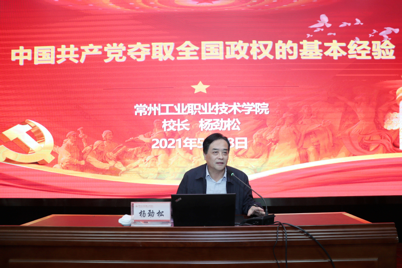 為有力推動黨史學習教育入腦入心、走深走實,5月18日,校黨委副書記、校長楊勁松以《中國共產黨奪取全國政權的基本經驗》為題,為信息工程學院師生講授專題黨課。黨課由信息工程學院黨總支書記李維主持。