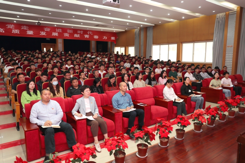 信息工程學院全體教師、學生黨員及學生代表參加黨課。
