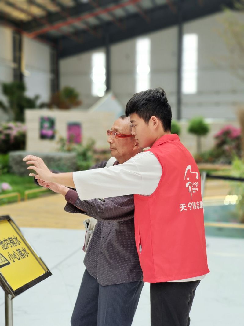 到了現(xiàn)場,眼前的風(fēng)景震撼著我們,罕見的花卉品種以及精心的擺設(shè)足以見識到工作人員們的匠心獨運。我們幫助老年游客拍照,提醒小孩子注意安全,和工作人員一起搬運花卉,無論36度的高溫抑或是瓢潑的大雨,只要身著志愿服裝,我們的每一份努力就都有了價值,每一份辛勞也有了寄托。