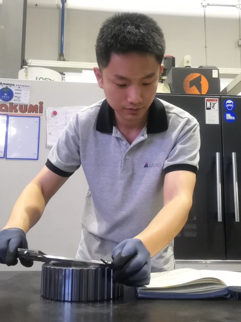 “我的技術,就是從開發(fā)這個電主軸慢慢積累起來的。”楊成對老師和公司充滿感激。也就是憑著這樣的頂尖技術,2016年6月,楊成成功應聘,成為麥格納汽車系統(tǒng)(常州)有限公司的一名機加工專員,專門負責公司的沖壓、加工的技術指導,時間不長,就做了機加工主管。