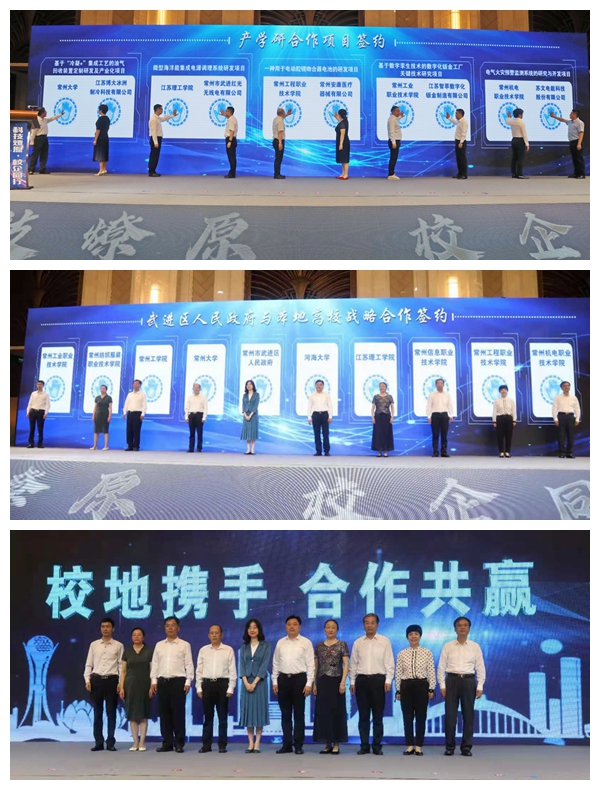 為主動服務蘇南國家自主創新示范區的建設,促進資源共享、實現優勢互補,創新校政企合作模式與機制,推進產教融合區域共同體建設,6月24日上午,我校參加武進區校政企合作創新發展大會,副校長吳麗云與武進區人民政府副區長李磊簽署校地戰略合作協議,校企合作處處長褚守云與江蘇智萃數字化鈑金制造有限公司總經理丁曉東圍繞共建數字化鈑金工廠進行了校企合作項目簽約。會議同時啟動“百名專家進百企”行動儀式。
