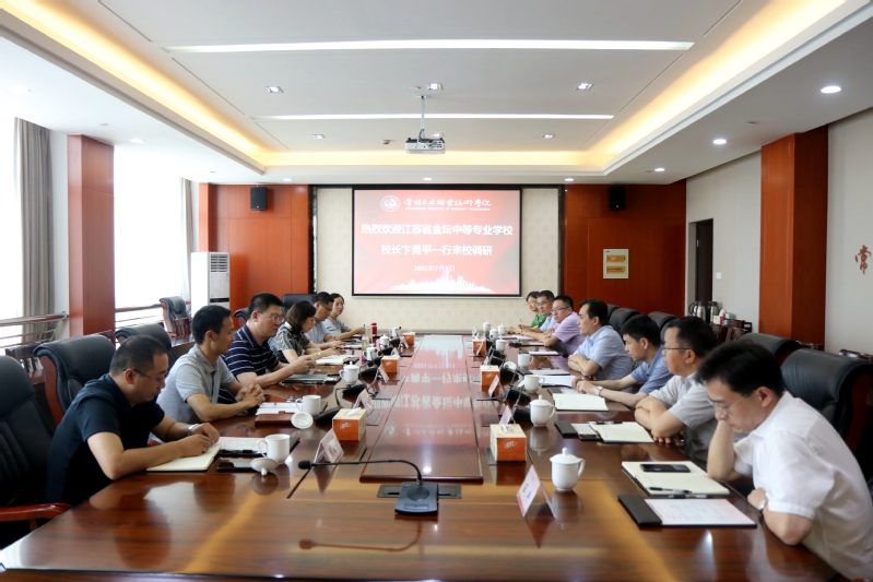 7月9日,江蘇省金壇中等專業(yè)學(xué)校校長卞勇平一行6人來我校調(diào)研交流,我校黨委副書記、校長楊勁松,黨委委員、副校長吳麗云會見來賓。
