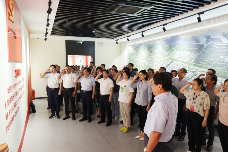 在白洋淀雁翎隊紀念館,黨委書記繆昌武帶領培訓班全體黨員,面向黨旗,高舉右拳,重溫入黨誓詞。大家神情莊重、聲音鏗鏘,仿佛重回當初加入黨組織的那一刻,更加堅定了自己的理想信念和黨性認識。