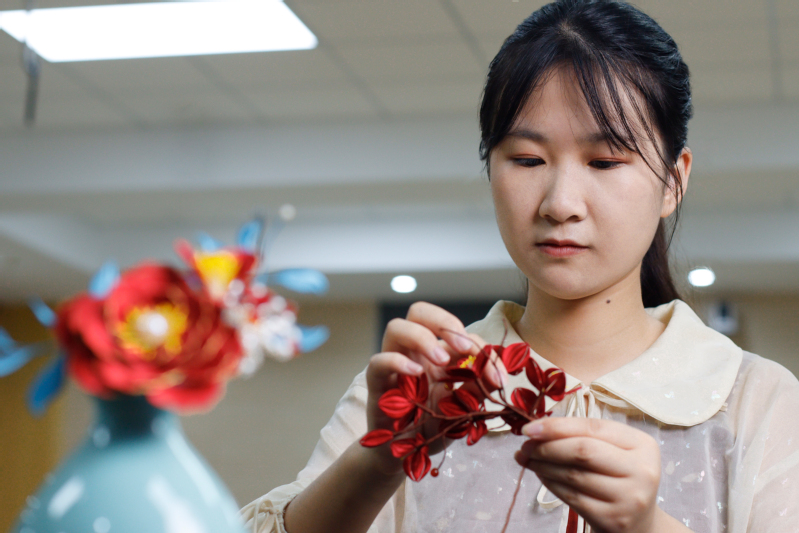 非遺傳承需要更多年輕人接棒,薛雨婷即將進(jìn)入大三實(shí)習(xí)階段,她表示要繼續(xù)做好一名纏花手工藝者,將纏花藝術(shù)進(jìn)行改造創(chuàng)新,以“愛(ài)國(guó)主義”為主題,融入當(dāng)代潮流元素,讓越來(lái)越多年輕人喜歡上纏花制作,讓“非遺”活起來(lái),讓中華優(yōu)秀傳統(tǒng)文化通過(guò)年輕一代不斷傳承,并發(fā)揚(yáng)光大。