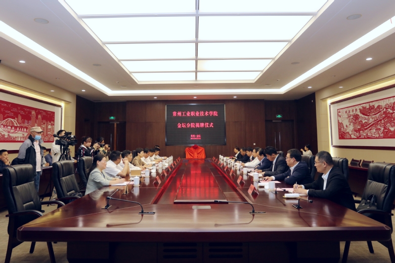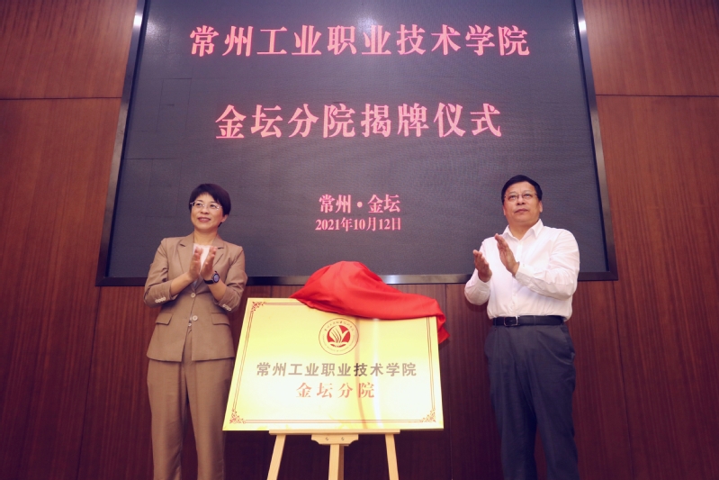 10月12日上午,“常州工業職業技術學院金壇分院”在常州市金壇區人民政府揭牌。金壇分院是常州市首家由高職院校和中專院校合作共建的學校。我校黨委書記繆昌武,黨委副書記、校長楊勁松,黨委委員、副校長吳麗云,金壇區委副書記、代區長吳小華出席儀式。揭牌儀式由金壇區副區長周文俊主持。