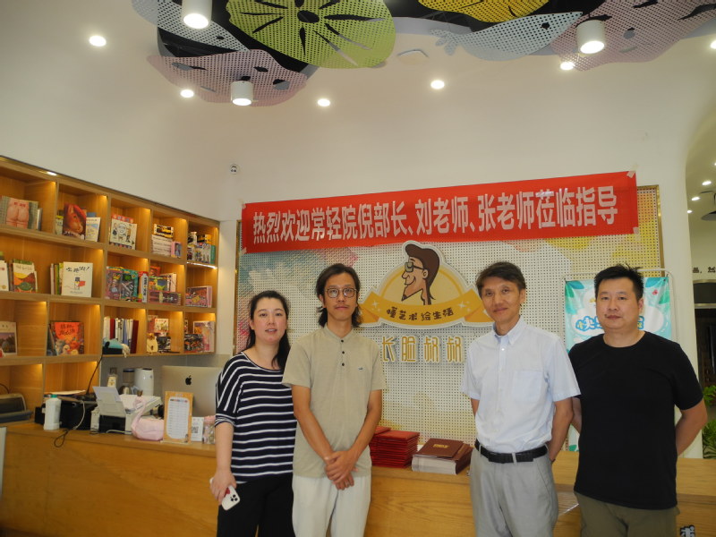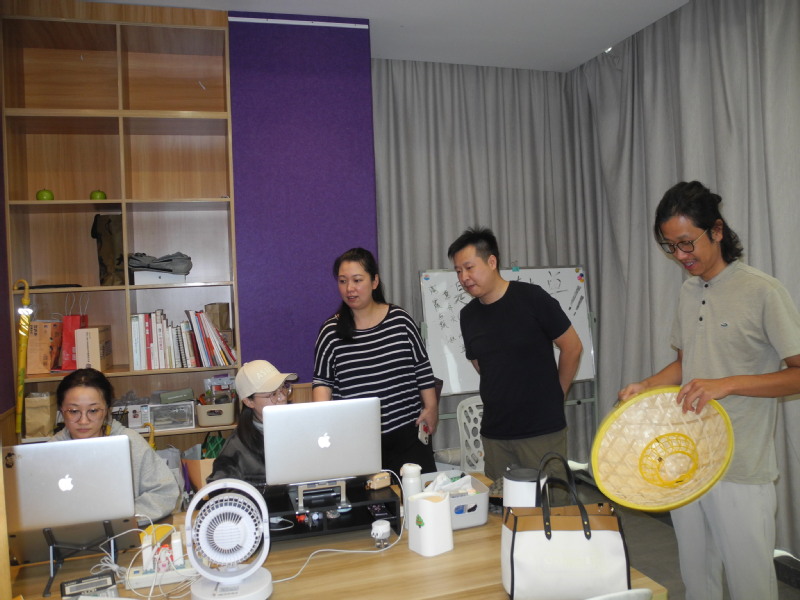 劉星老師(右3)、張曄老師(右2)指導繪館文創人員進行文創設計