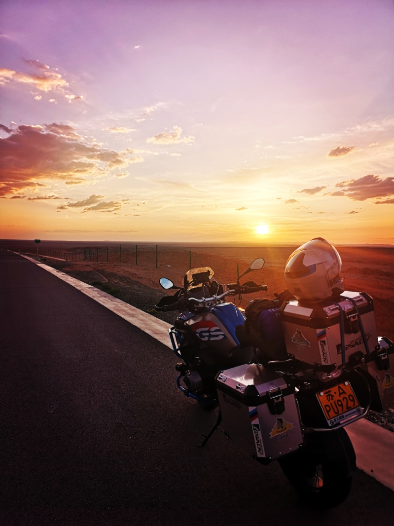 大地昏暗,天似穹廬,獨臥帳篷,他想了很多很多。究竟是他拋棄了人間,還是人間拋棄了他?漢朝大將霍去病曾經在此戎馬,雖聲名顯赫,但區區二十多歲,便告別了人世,人的生命為何如此脆弱?自己的事業該如何繼續?那么多人依托自己的藝術繪館養家糊口,自己若有個三長兩短,該怎么辦?被稱作“死亡之海”的塔克拉瑪干沙漠還在自己的行程之中,摩托的雙輪,是否還應該繼續向前飛奔?