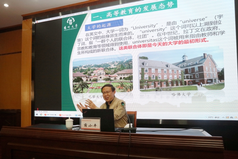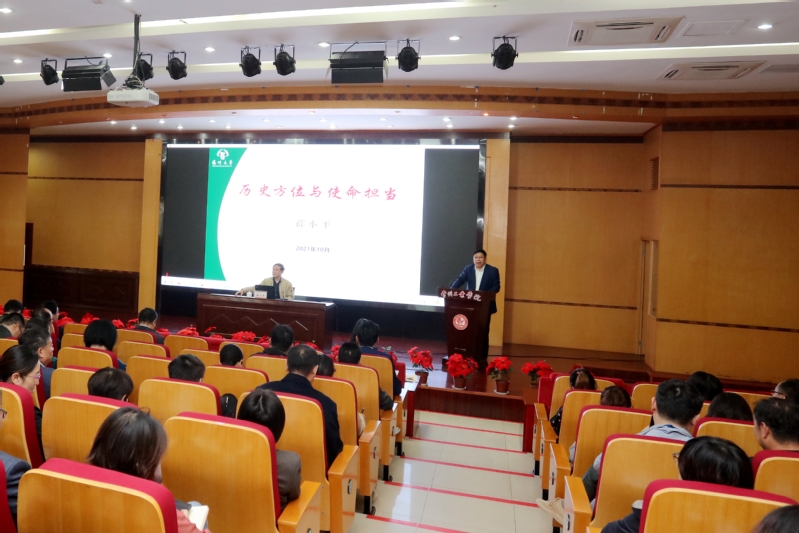 10月26日,揚州大學黨委常委、組織部部長薛小平應邀來我校作《歷史方位與使命擔當——基于高等教育發展視角》專題講座。校黨委書記繆昌武主持講座。