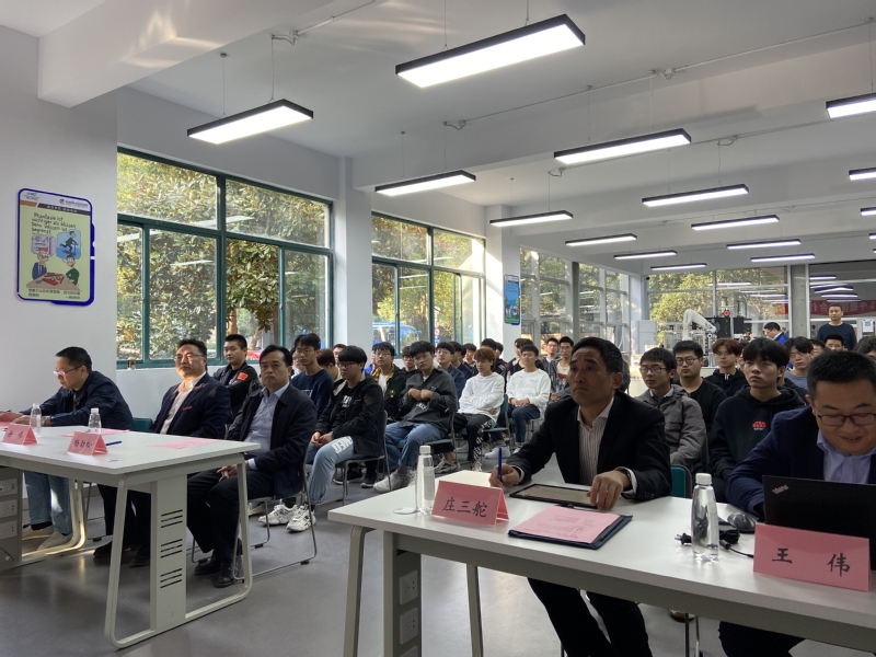 科教城現(xiàn)代工業(yè)中心副主任徐紅、我校教務(wù)處處長(zhǎng)徐偉、智能控制學(xué)院院長(zhǎng)蔣正炎、智能控制學(xué)院黨總支副書記張永進(jìn),以及21級(jí)機(jī)電AHK試點(diǎn)班69位同學(xué)參加了開班儀式。