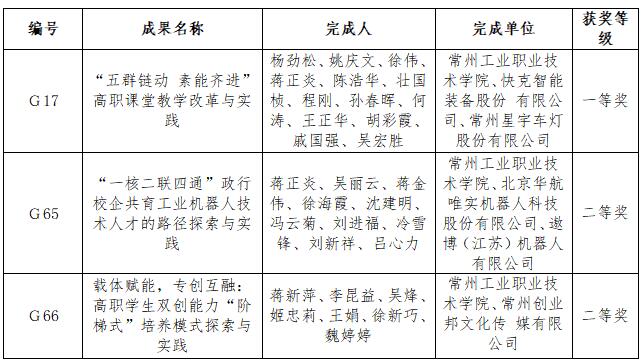 日前,省教育廳發布《2021年江蘇省職業教育類教學成果獎擬獎勵名單公示》,校黨委副書記、校長楊勁松教授主持的《“五群鏈動 素能齊進”高職課堂教學改革與實踐》獲2021年江蘇省職業教育類教學成果獎一等獎。另外,副校長蔣新萍教授主持的《載體賦能,專創互融:高職學生雙創能力“階梯式”培養模式探索與實踐》和科技處處長蔣正炎教授主持的《“一核二聯四通”政行校企共育工業機器人技術人才的路徑探索與實踐》榮獲教學成果獎二等獎。這是學校繼榮獲國家級教學成果一等獎1項、二等獎2項,江蘇省教學成果特等獎1項、一等獎2項、二等獎8項之后再次榮獲教學成果大獎。