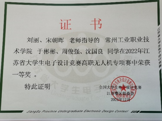 我們的學長們積極參加各類技能技術比賽,獲得江蘇省大學生電子設計競賽無人機專賽項一等獎、江蘇省“挑戰杯”大學生課外學術科技作品制作二等獎;“互聯網+”創新創業大賽江蘇省二等獎;常州市高等教育和職業教育創新創業大賽高校組二等獎;江蘇省大學生機器人大賽“室內空中巡邏救援”無人機賽項一等獎;“野外空中巡邏救援”無人機賽項三等獎;全國職業院校農業植保機技能大賽三等獎;“極光UAV”無人機社團在2019年、2020年連續兩年被評為常州市十佳社團;學生獲得無人機方向1項發明專利和多項實用新型專利的授權。
