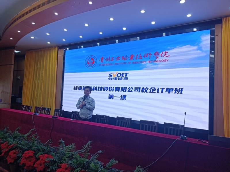 周麗代表學校向蜂巢能源對我校一如既往地支持和信任表示衷心的感謝。她指出,學校緊緊圍繞江蘇省“十四五”發展規劃和常州市“532”發展戰略及新能源之都建設,制定學校“十四五”高質量發展規劃,服務常州“國際化智造名城、長三角中軸樞紐”城市定位,聚焦高端裝備、新能源、新材料、新能源汽車及核心零部件等重點產業,探索實施校企雙方共同研究制定人才培養方案。學校將繼續利用好校企合作平臺,推動現代學徒制人才培養模式持續發展,以“蜂巢能源班”為契機,進一步深化產教融合,服務職業教育發展、服務企業發展、服務區域經濟發展。