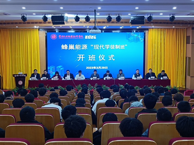 蜂巢能源經理邵帥、楊榮娟,我校招生就業處、智能控制學院、數字商務學院、機械與交通學院相關負責人和現代工程師班全體同學出席開班儀式。