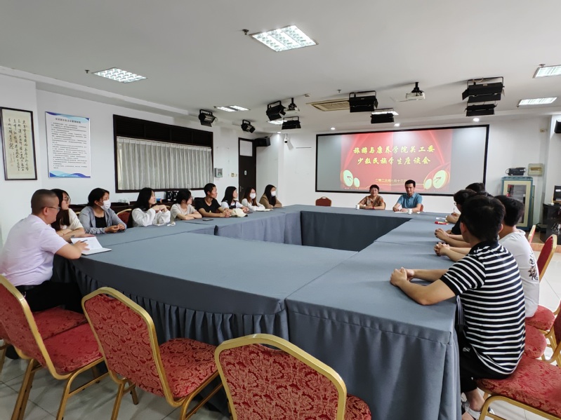 為鑄牢中華民族共同體意識,及時關心少數民族學生當前思想動態及學習生活情況,呈現旅游與康養學院“親情一家人”的學院文化。近日,旅游與康養學院組織召開“親情一家人”少數民族學生交流會,關工委委員侯志燕、學生黨支部書記尹奎、全體輔導員及21、22級少數民族學生代表參會。