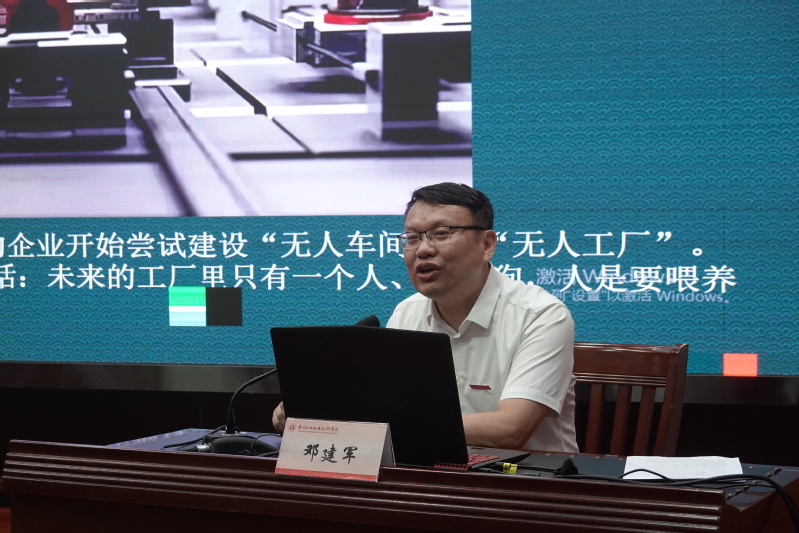 鄧建軍院長結(jié)合自身30多年在生產(chǎn)一線參與500多個(gè)技術(shù)改造項(xiàng)目、攻克約50個(gè)重大技術(shù)難題,從一名普通的技術(shù)工人成長為行業(yè)技術(shù)領(lǐng)跑者的工作經(jīng)歷,為同學(xué)們介紹了從無人工廠到未來工廠、智能工廠概念和發(fā)展歷程、智能制造的關(guān)鍵應(yīng)用技術(shù),以及智能車間實(shí)施等情況。他對(duì)同學(xué)們提出了四點(diǎn)希望和建議:一是希望能堅(jiān)定信心,筑夢(mèng)未來工匠,成為大有作為的時(shí)代青年;二是希望能保持恒心,培養(yǎng)奮斗精神,做堅(jiān)持知行合一的向上青年;三是希望能勇于創(chuàng)新,練就過硬本領(lǐng),做矢志全面發(fā)展的有為青年;四是希望能具有國際化視野,做新質(zhì)生產(chǎn)力的推動(dòng)者,為中國制造趕超世界先進(jìn)水平不斷努力。