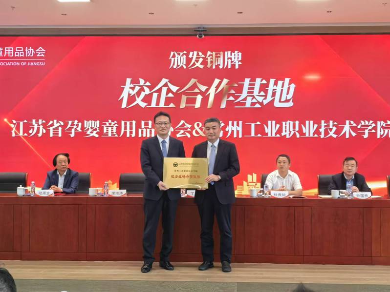 會上,江蘇省孕嬰童用品協(xié)會為我校頒發(fā)校企合作基地銅牌。