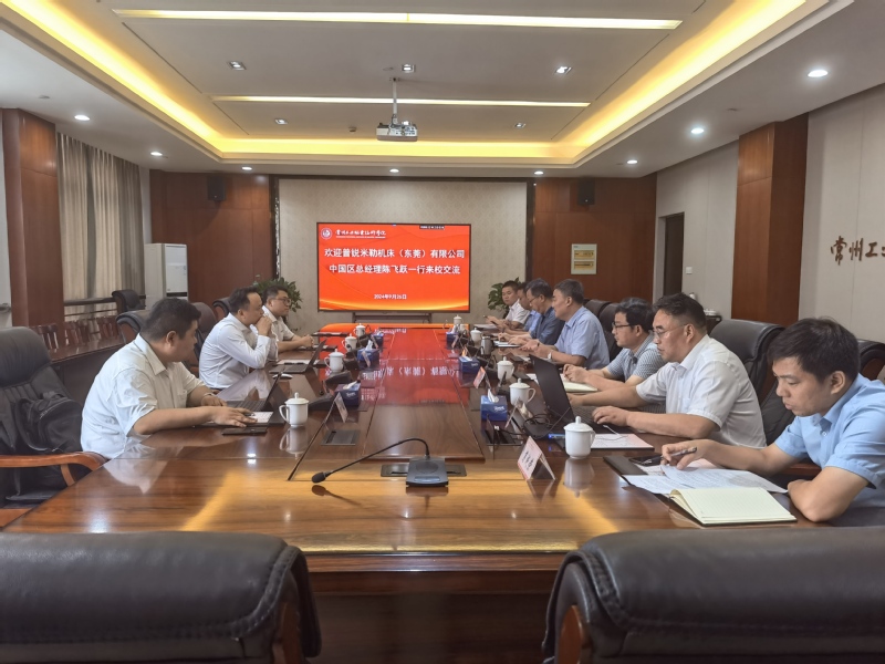 9月26日,普銳米勒機床(東莞)有限公司中國區總經理陳飛躍、蘇州分公司總經理馬文睿、中國區代理于云、電氣及解決方案總工程師賀永芳一行來我校交流。校黨委書記席海濤、副校長檀祝平出席會議,會議由產學研合作處處長褚守云主持。