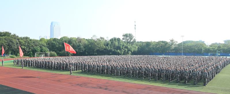 10月8日上午,我校在田徑運動場舉行2024級學生軍訓開營儀式。黨委書記席海濤,黨委副書記、校長楊勁松,黨委副書記毛伯民,黨委委員、副校長吳麗云,軍訓團總顧問邵寧出席儀式。2024級全體新生、學校相關職能部門負責人、二級學院有關領導參加活動。儀式由黨委委員、副校長檀祝平主持。