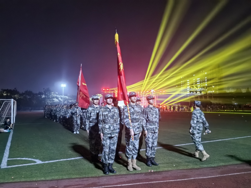 戎光常工業,夜行科教城。10月14日晚間,我校組織2024級軍訓學員進行緊急集合及行軍拉練活動。黨委委員、副校長吳麗云出席出征儀式。