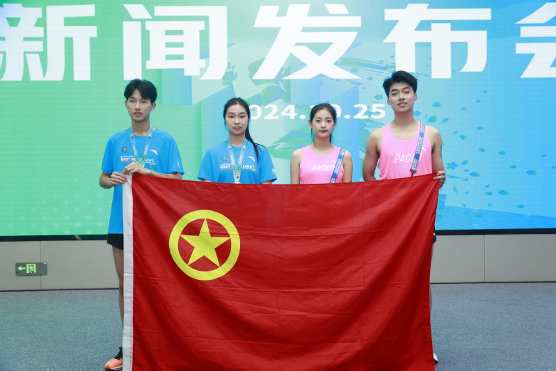 在比賽的新聞發(fā)布會上,組委會為我校志愿服務團隊授牌。旅游與康養(yǎng)學院4位同學現(xiàn)場展示推介本屆賽事的完賽獎牌、賽事服裝、參賽包及周邊衍生產(chǎn)品。