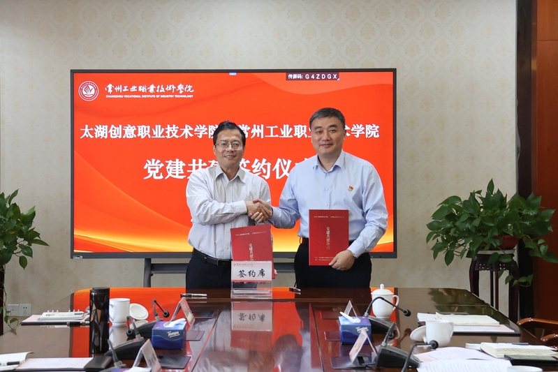 11月4日,太湖創意職業技術學院黨委書記壯國楨,黨委副書記、組織部部長許佳偉一行來訪我校,與我校簽署黨建共建協議。我校黨委書記席海濤參加簽約儀式。活動由副校長檀祝平主持。