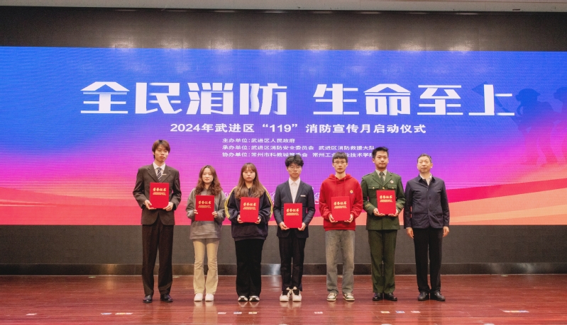 2024年11月9日是第33個全國消防日。11月6日,由武進區(qū)人民政府、武進區(qū)消防安全委員會主辦,武進區(qū)消防救援大隊承辦,武進區(qū)科教城管委會和我校協(xié)辦的“全民消防 生命至上”高校消防志愿服務隊成立暨2024年度武進區(qū)消防宣傳月啟動儀式在我校舉行。武進區(qū)委常委、副區(qū)長孫益鋒,副區(qū)長、武進區(qū)公安分局局長盛世麟,常州市科教城管委會副主任劉建榮,我校副校長吳麗云出席活動。