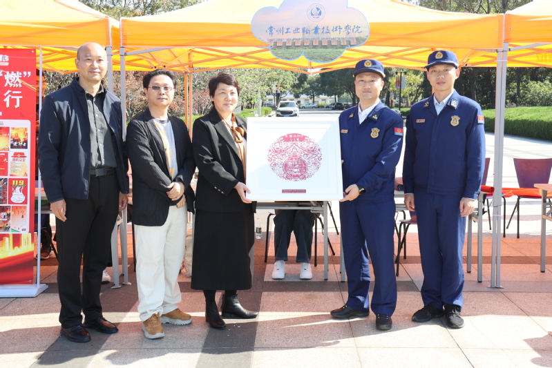 我校結合學校特色,在展區(qū)內展示了金壇刻紙、無人駕駛電動車、AI智能視覺機器人和無人機表演,吸引了大量師生群眾駐足觀看和積極討論。活動結束后,我校藝術創(chuàng)意學院向武進區(qū)消防救援大隊贈送了“119消防宣傳月”主題非遺刻紙作品,不僅豐富了消防宣傳的載體,也凝聚了我校師生對“最美逆行者”的崇高敬意。