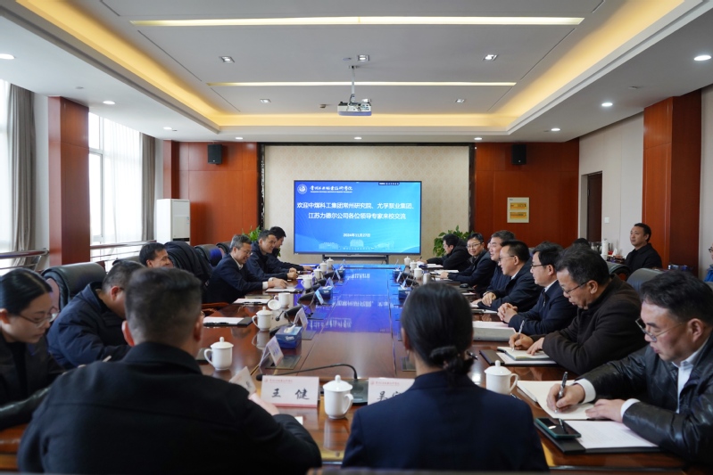 11月27日,中煤科工集團常州研究院有限公司總經理王海波、尤孚泵業集團有限公司董事長潘曉彬、江蘇力德爾電子信息技術有限公司董事長陳小波一行來我校交流洽談合作。黨委書記席海濤出席會議,會議由副校長檀祝平主持。