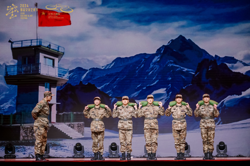 本屆“大戲展”自2024年6月啟動以來,共收到省內62所高校、96部?。ü潱┠可陥?。經組織專家評審研究,共20部短劇作品入選2024大戲展終評。我校報送的原創短劇作品《永遠的喀喇昆侖》講述的是西藏邊防某部新兵日常訓練時,班長見部分新兵訓練懈怠,便給新兵們講述他爺爺和戰友修路進藏的經歷,激勵新兵立志成為一名合格戰士的故事,激發了年輕人對國家和民族的熱愛與責任感。