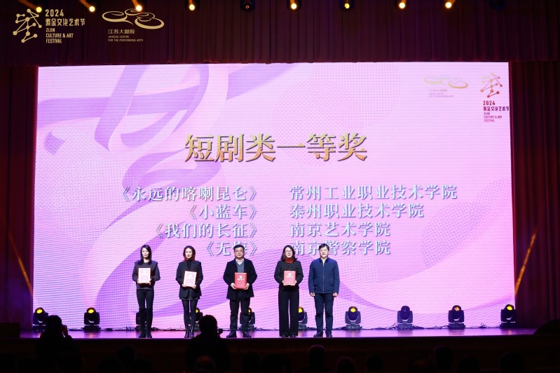 12月20日,2024江蘇省大學生戲劇展演頒獎儀式在江蘇大劇院舉行。我校原創短劇《永遠的喀喇昆侖》獲短劇類一等獎。江蘇省委宣傳部副部長徐寧等領導出席活動并為獲獎單位頒獎。我校副校長檀祝平出席活動,團委相關人員陪同參加。