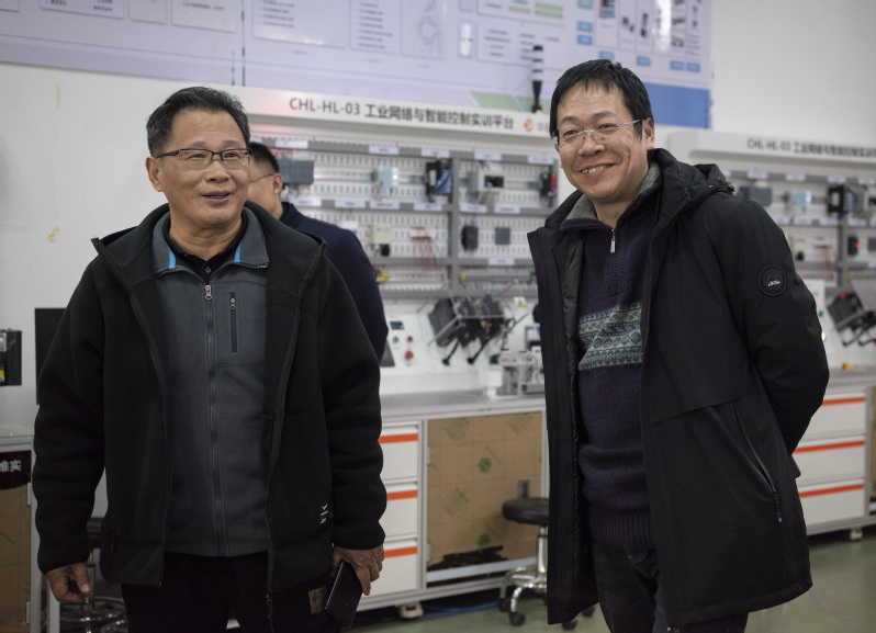 會后,相關專家學者參觀了智能控制學院實訓基地。