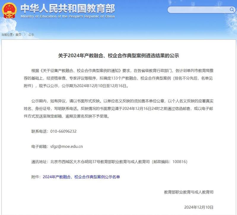 本次遴選在各省級教育行政部門、各計劃單列市教育局推薦的基礎上,經資格審查、專家評議等程序,選定了133個產教融合、校企合作典型案例,江蘇省共有6個案例入選。