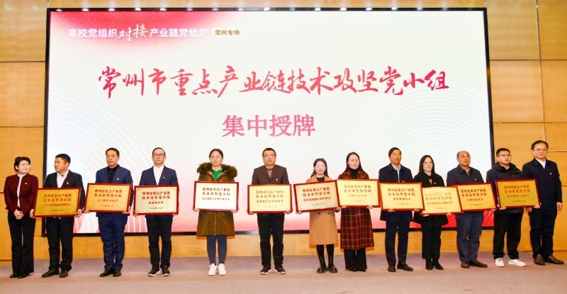 會上發布了常州市“強基固鏈·校地融合”戰略合作倡議,推出了《在常高校助力“1028”產業體系優勢平臺(院系)索引》。與會領導為江蘇高校“雙帶頭人”教師黨支部書記“強國行”專項行動——常州賦能站揭牌。