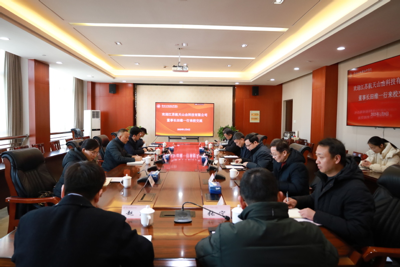 1月9日,江蘇航天山由科技有限公司董事長田維代表團來我校訪問交流。此次來訪旨在加強校企之間的合作與交流,共同探索產教融合發展的新機遇。我校黨委書記席海濤、副校長檀祝平出席會議,會議由檀祝平主持。