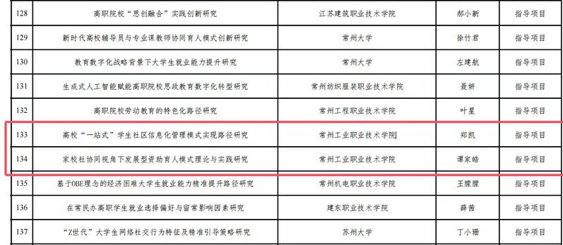 此外,我校鄭凱老師的課題《高?!耙徽臼健睂W生社區信息化管理模式實現路徑研究》、譚家皓老師的課題《家校社協同視角下發展型資助育人模式理論與實踐研究》立項2024年江蘇省高等教育學會輔導員工作研究會專項課題指導項目。