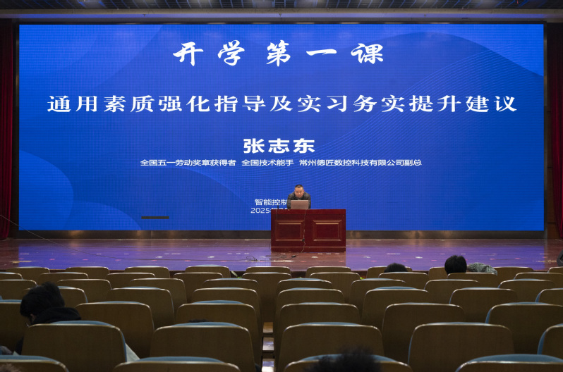 2月26日,智能控制學院開展“大先生帶小工匠”系列活動,邀請全國五一勞動獎章獲得者、全國技術能手、常州德匠數控科技有限公司副總、我校優秀校友張志東,為2024級全體同學開展“通用素質強化指導與實習務實提升建議”主題講座。
