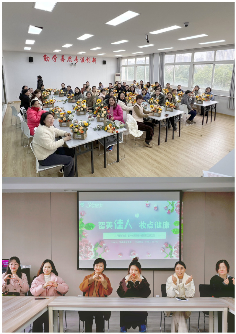 優雅自信綻光芒。旅游與康養學院分工會開展“她力量,女性讓商業更美好”交流活動,全體女教工欣賞花藝作品,線上觀看全國旅游專業女大學生成長之路的專題報告,感慨新時代女性在各領域的發展與成長。機械與交通學院分工會開展“優雅人生,綻放自我”插花賞析交流活動,特邀專業花藝師為女教職工們講解插花技巧。智能控制學院分工會開展“智美佳人,妝點健康”女神節活動,邀請專業形象設計師為女教職工們講解護膚、化妝技巧,幫助她們提升個人形象,展現自信優雅的女性魅力。黨群、行政分工會開展“綻放芳華,寄語未來”許愿活動,大家在心愿卡上寫下心愿,表達對工作、生活和未來的美好祝福。藝術創意學院分工會開展“三八節觀影活動”,女教職工在光影流轉中感受堅韌不拔、勇敢追夢的精神力量。(審核:馮慶媛、戎曉云、楊曌)