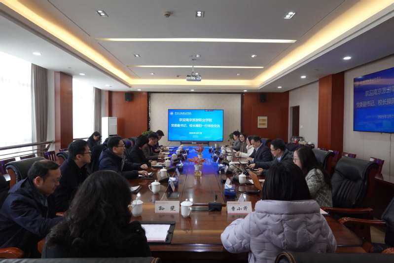 3月7日,南京旅游職業學院院長操陽一行蒞臨我校考察調研。校長楊勁松接待來賓并主持會議。
