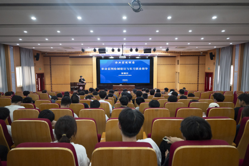 在講座中,彭銀行從自身出發(fā),講述了自己從職場小白一步步成長的經(jīng)歷與經(jīng)驗(yàn)。他結(jié)合自身多年的職業(yè)經(jīng)驗(yàn),深入淺出地為同學(xué)們講解了職業(yè)藍(lán)圖繪制的重要性。他建議同學(xué)們在實(shí)習(xí)期間要明確自己的職業(yè)目標(biāo),制定清晰的發(fā)展路徑,并通過實(shí)踐不斷提升自己的綜合能力。他還從企業(yè)視角為同學(xué)們解讀了實(shí)習(xí)和就業(yè)的要點(diǎn),強(qiáng)調(diào)企業(yè)不僅看重專業(yè)技能,更看重綜合素質(zhì),建議同學(xué)們在實(shí)習(xí)中要積極主動,勇于嘗試,不斷提升自己的綜合能力,為未來的職業(yè)發(fā)展做好充分準(zhǔn)備。最后,彭銀行分享了自己在職業(yè)發(fā)展過程中的心得與體會。他鼓勵同學(xué)們樹立正確的職業(yè)目標(biāo),保持學(xué)習(xí)的熱情,向優(yōu)秀的前輩多學(xué)習(xí),積極面對職場中的挑戰(zhàn)和機(jī)遇。他的話語中充滿了對學(xué)弟學(xué)妹們的關(guān)懷和期望,贏得了現(xiàn)場師生的陣陣掌聲。