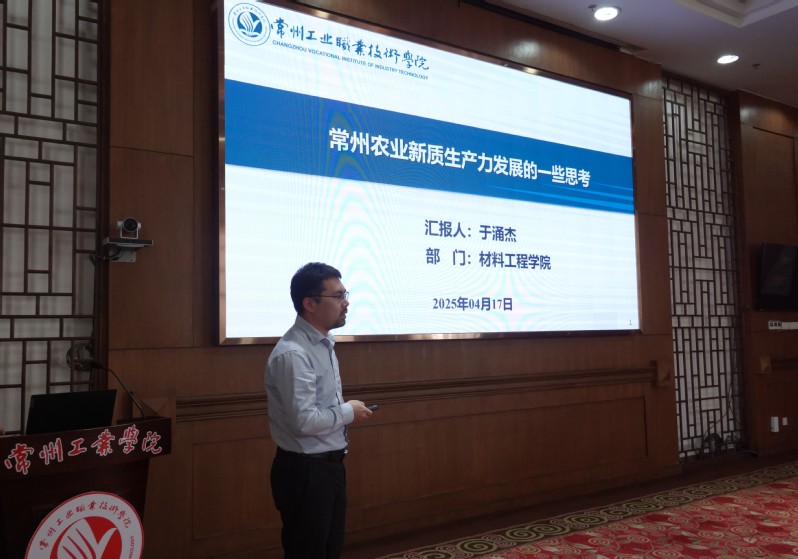 市科技局基礎研究處處長陸華介紹了全市基礎研究工作開展情況,并就職業院校如何立足常州產業基礎和發展特色開展應用基礎研究提出了具體的工作建議。材料工程學院科研骨干教師于涌杰圍繞常州農業新質生產力發展,介紹了其團隊最新科研成果落地應用情況。